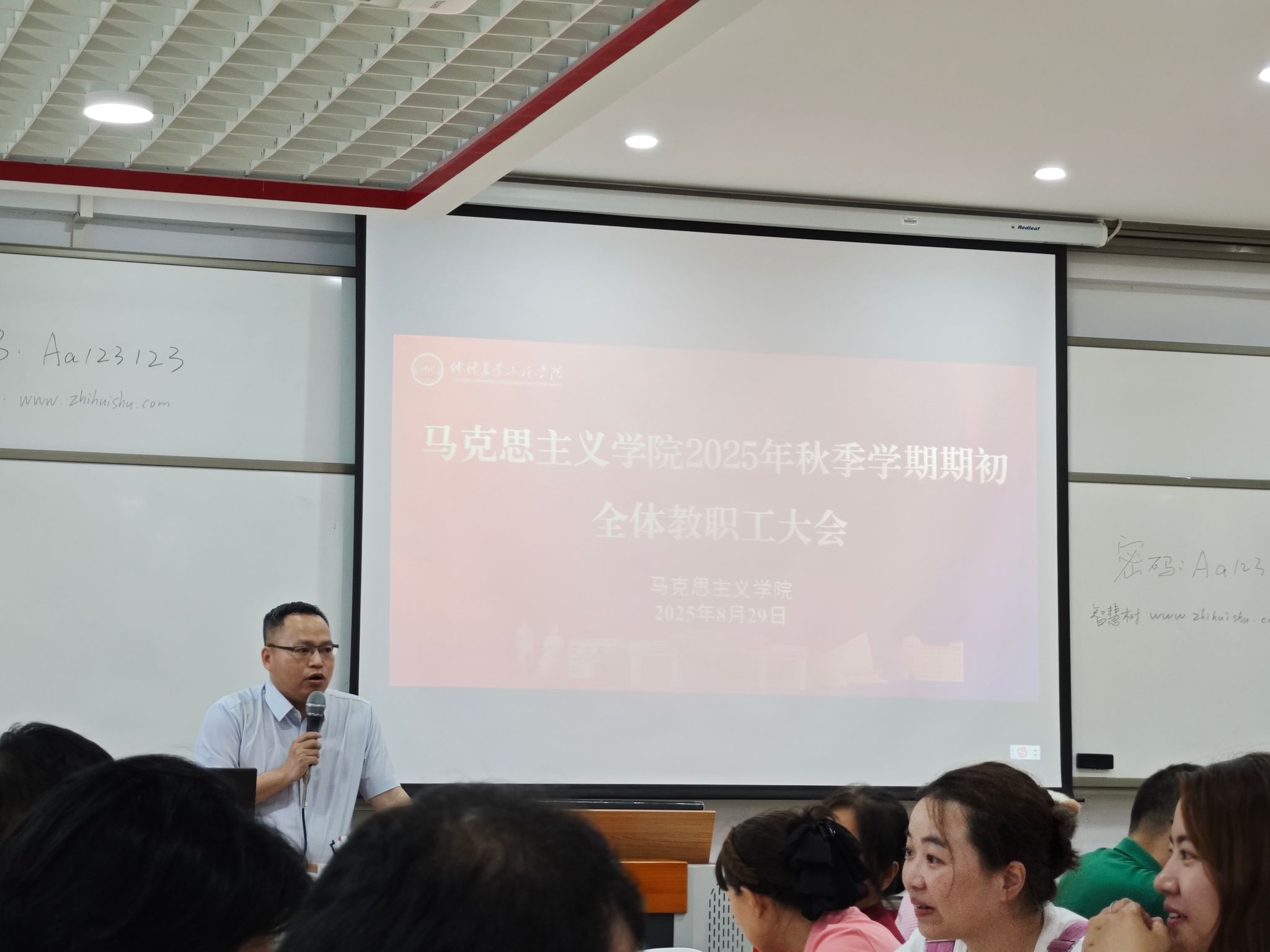 金风启新程,奋进正当时。8月29日,william威廉中文在白云校区教学楼②808室召开2025年秋季学期期初全体教职工大会,学院全体教职工参加会议。会议由学院党总支书记姜晓丽主持。