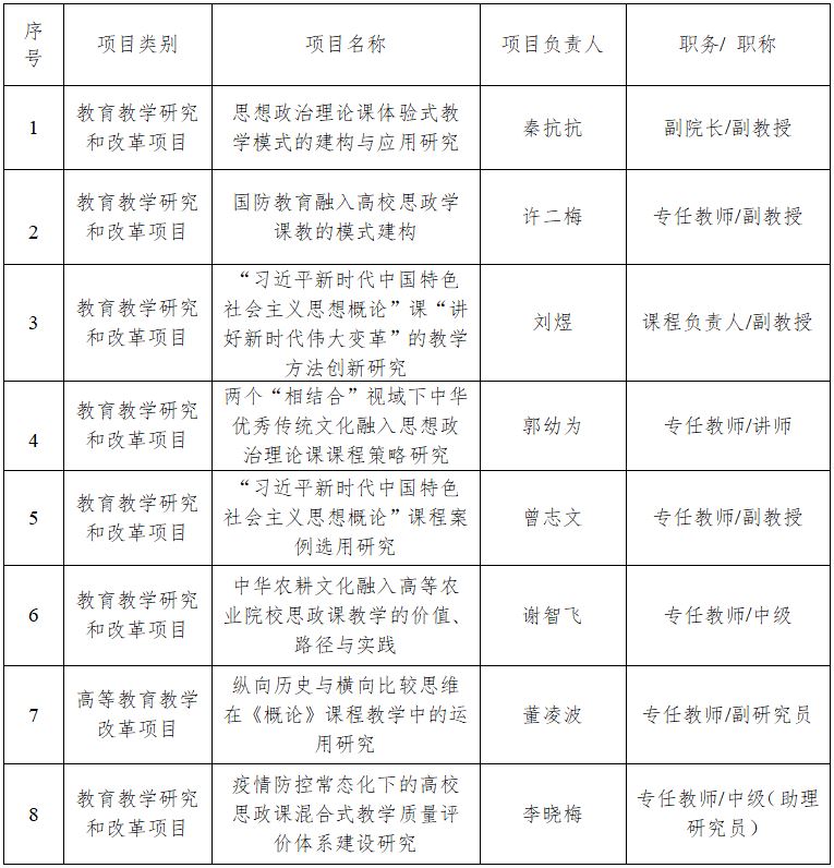 关于2022 年度省和校级教学质量与教学改革工程项目学院推荐的公示