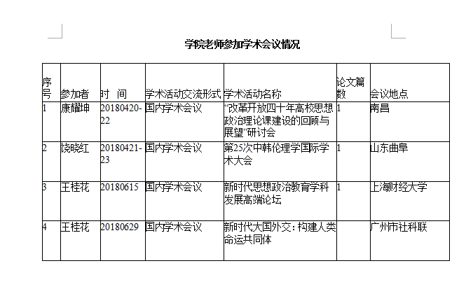2018年学院老师参加学术会议情况