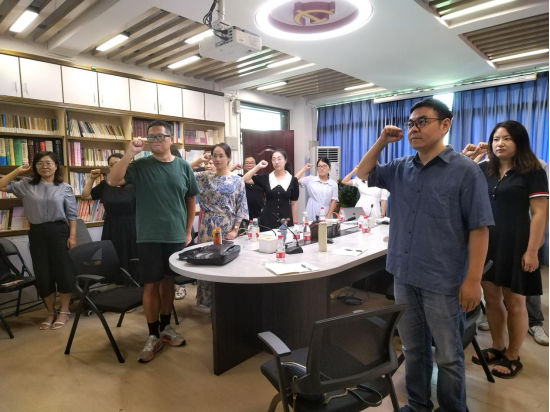 最后,党支部组织全体党员“重温入党誓词”。在支部书记刘煜的领誓下,全体党员郑重地举起右拳,重温自己对党忠诚的誓言。本次主题党日活动具有很强的政治性和仪式感,大家纷纷表示,要进一步坚定入党初心,立足本职,以更踏实的工作态度和更优秀的工作业绩为学院的高质量发展做出应有的贡献。